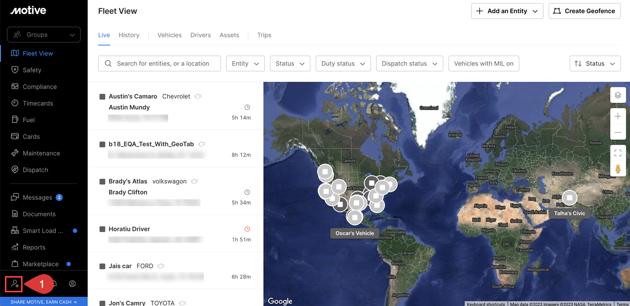 1. Log into Fleet Admin account and click on Admin icon in the left-hand side menu.